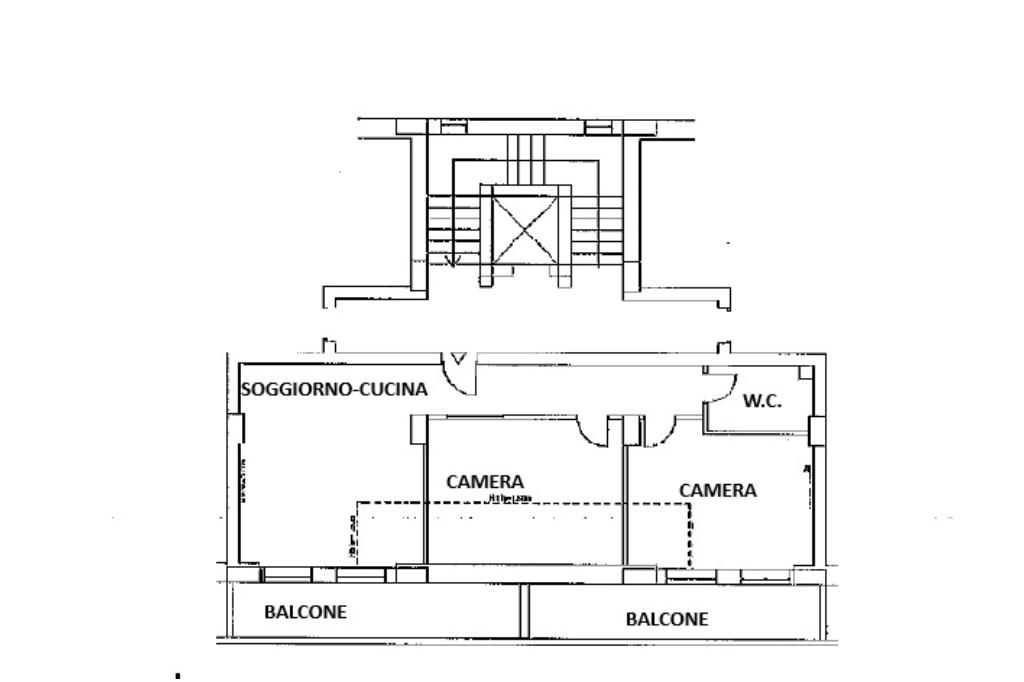 • Ampio soggiorno con cucina a vista, luminoso e ben vivibile, con accesso diretto al balcone