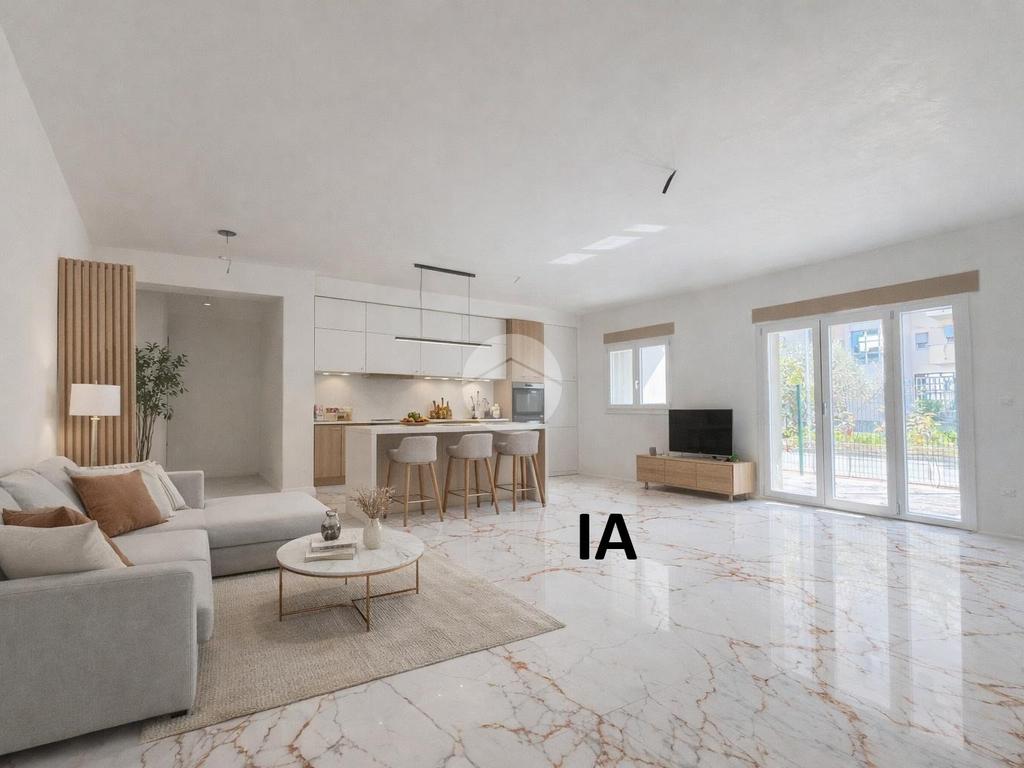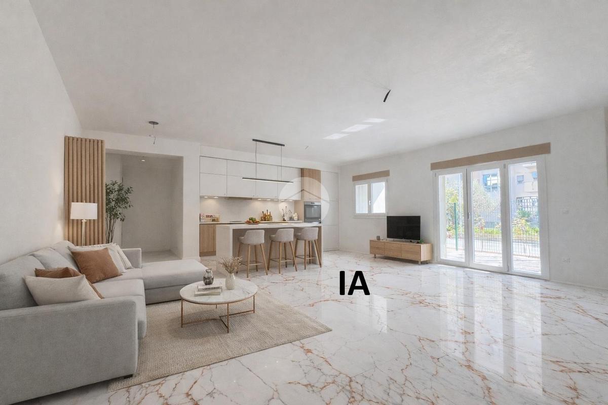 La tipologia qui rappresentata è un quadrilocale al piano terra, così suddiviso: ampio soggiorno con cucina a vista, tre camere da letto,