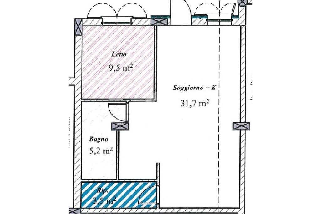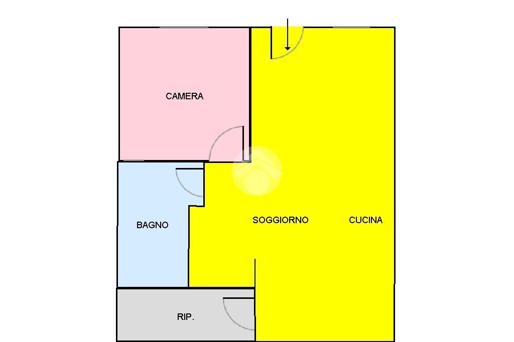 In vendita: Bilocale con camera matrimoniale e ripostiglio.