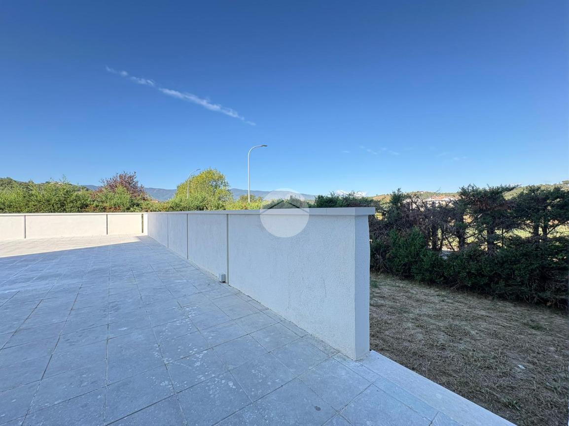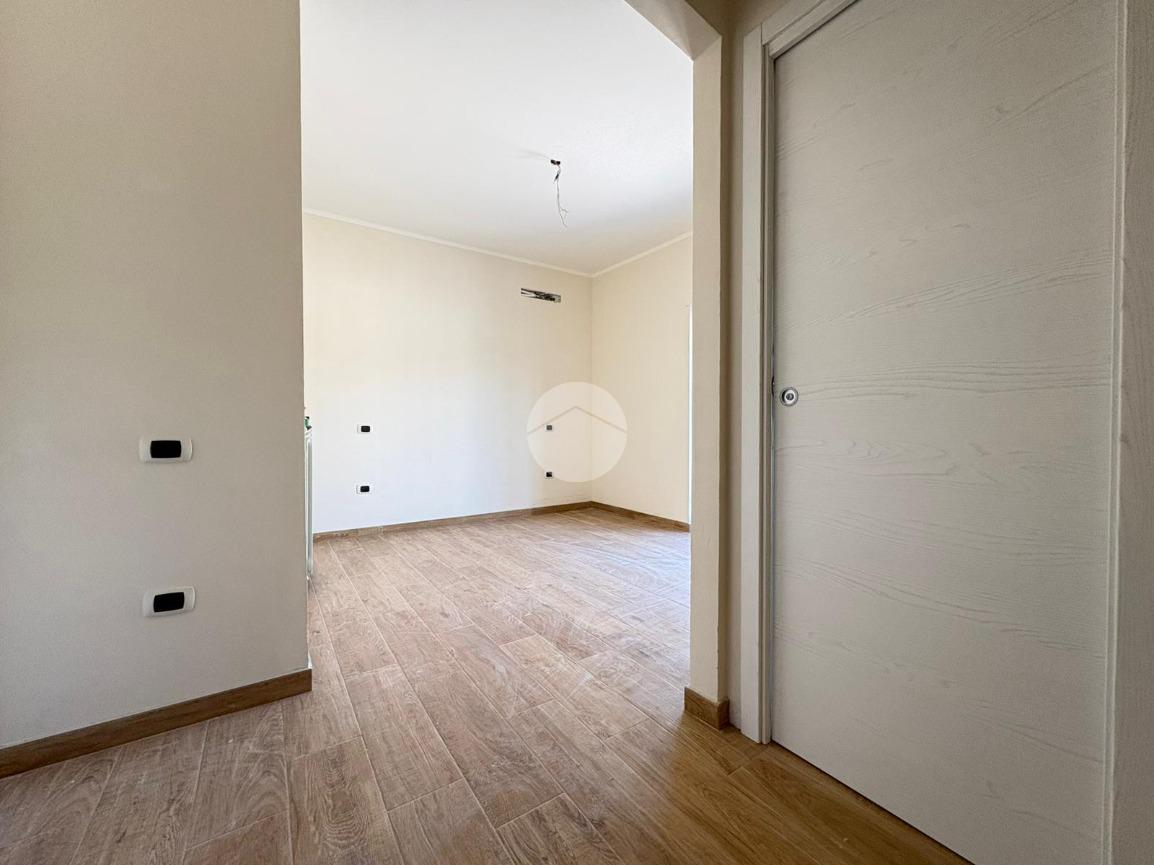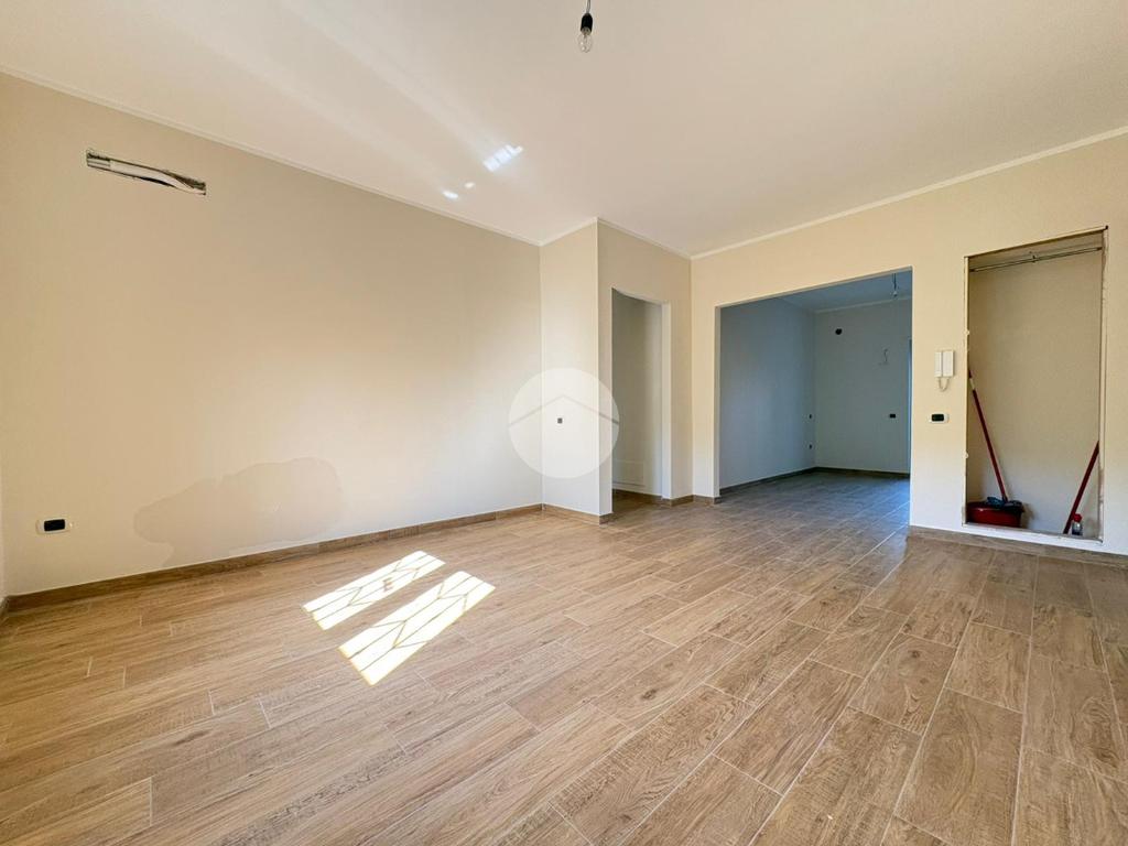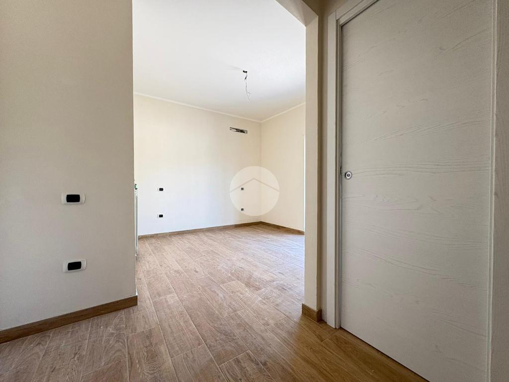 Rifiniture dell'immobile: pavimentazione in gress porcellenato effetto legno, porte interne tamburate in legno, infissi in pvc a taglio termico, tapparelle in pvc avvolgibili, pavimentazione esterna da definire. L'immobile si vende compreso di box auto.