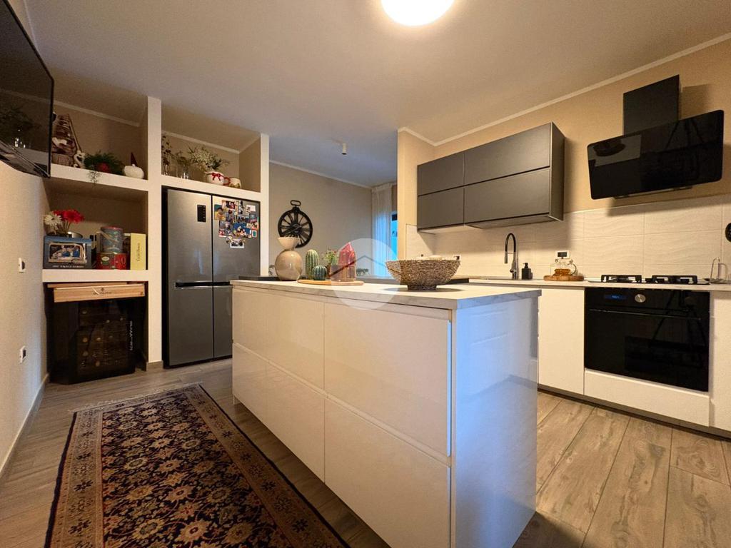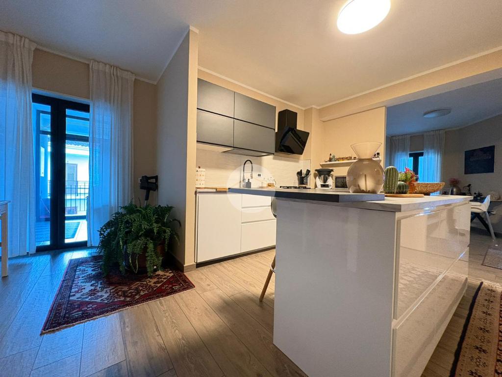 La cucina abitabile, moderna e funzionale, comprende isola, lavastoviglie, forno, cappa ed è anch'essa completamente arredata. Dalla cucina si accede a una lavanderia con balcone.