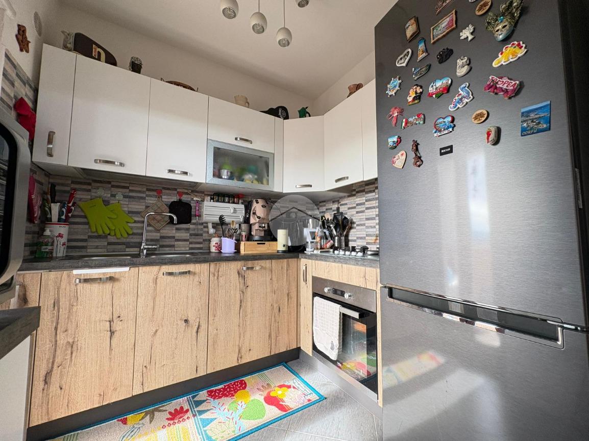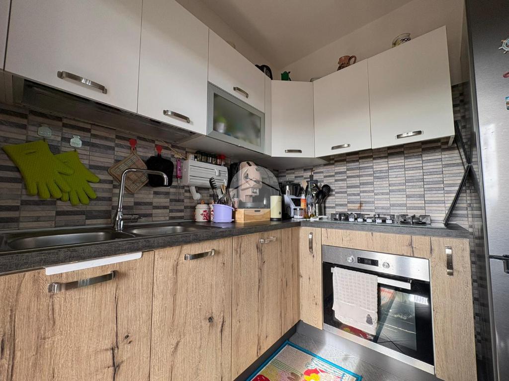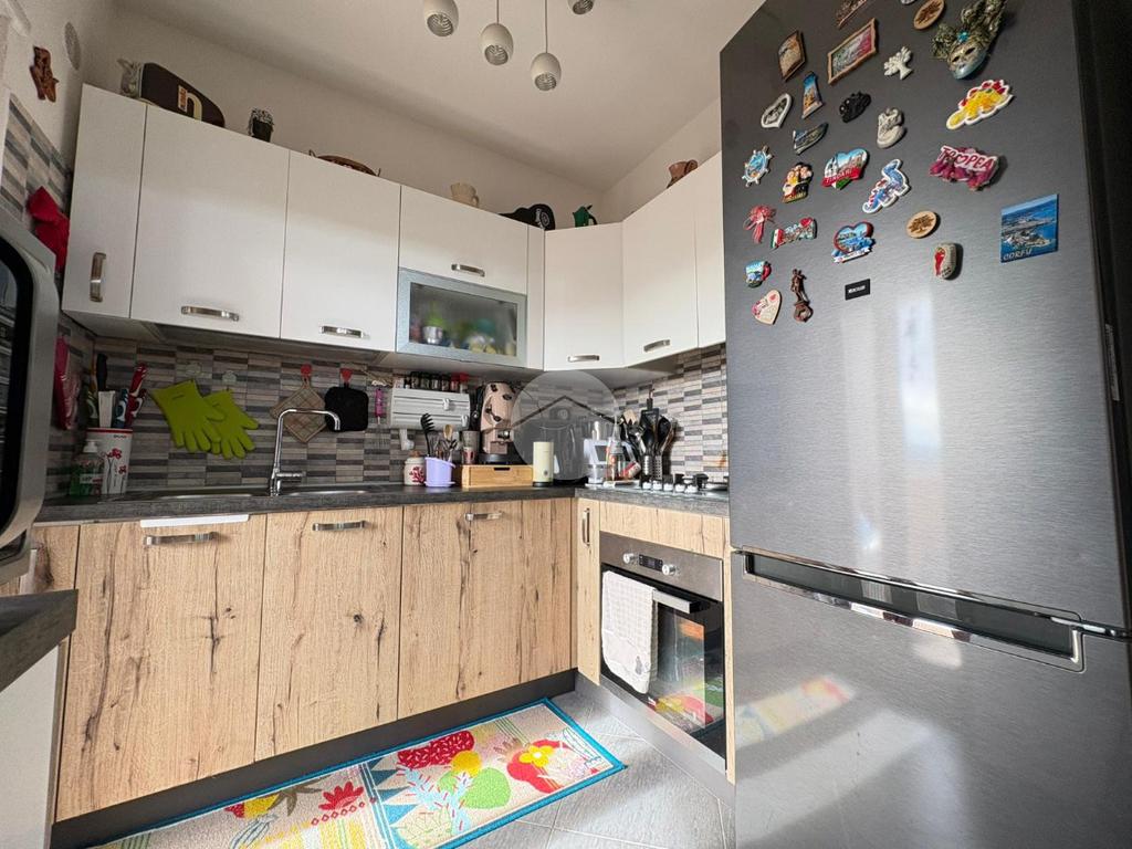 L’ingresso si apre su un ampio e accogliente soggiorno, separato dall'angolo cottura. Entrambi gli ambienti hanno accesso diretto a un comodo balcone, ideale per momenti di relax all’aperto.