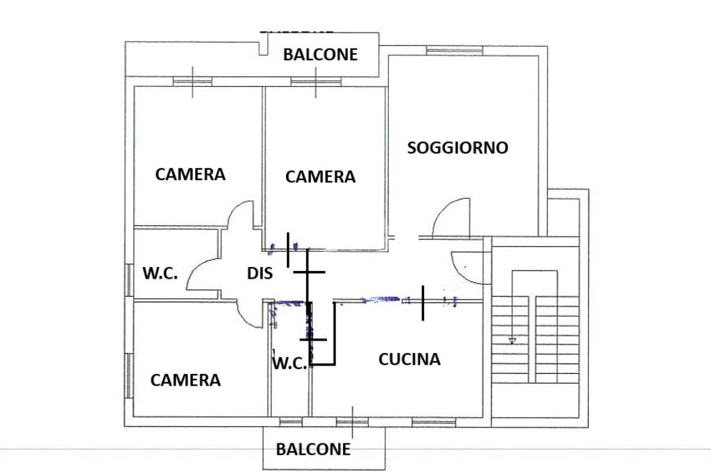 La zona notte offre tre camere da letto generose, pensate per garantire comfort e privacy a tutta la famiglia. La camera matrimoniale, vera chicca della casa, dispone di un balcone privato, perfetto per ritagliarsi uno spazio intimo e riservato.