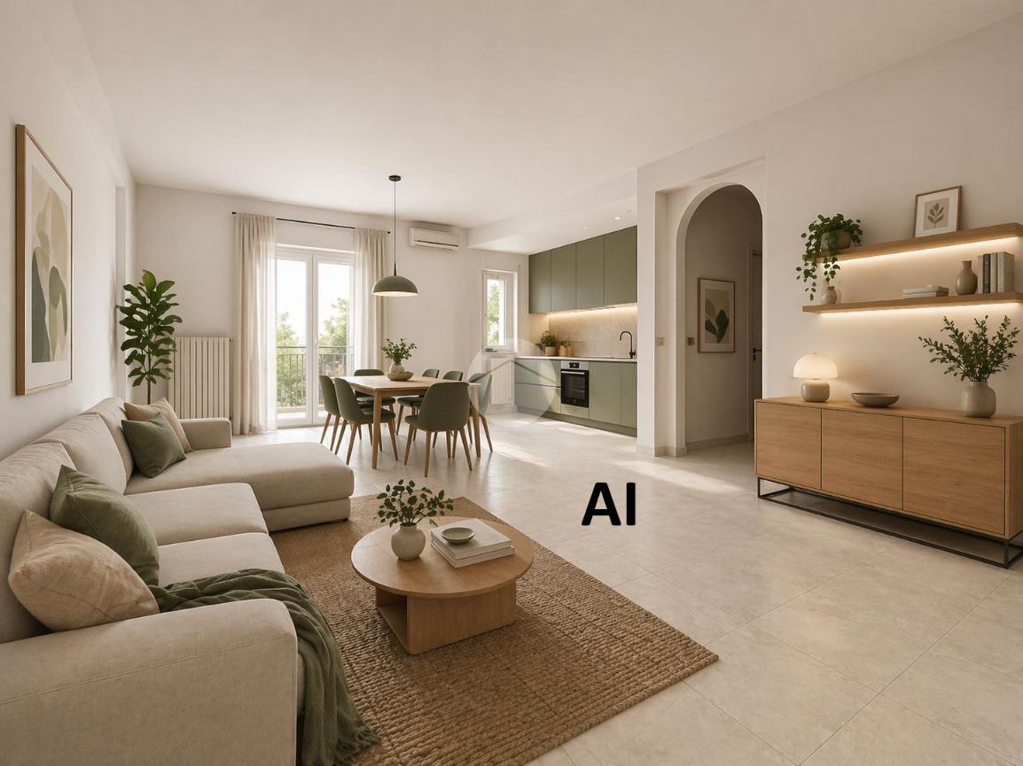 Ampio soggiorno con cucina open space, facilmente personalizzabile e arredabile come da moderno concept (vedi rendering), perfetto per creare un ambiente accogliente e funzionale